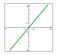 Zoals te zien is, stijgt de grafiek over het hele interval [-5,5]. Ook blijkt dat in de oorsprong de richtingscoëfficiënt gelijk is aan 0. Weliswaar is de functie op [-5,5] stijgend, maar de mate van stijging varieert. Dat de functie stijgend is, ziet men aan de eerste afgeleide, want deze is nergens negatief: