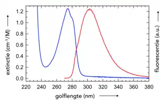 Tyrosine absorbeert ultraviolet licht. De absorptie van licht (extinctie) hangt onder andere af van de molaire extinctiecoëfficiënt. Deze grootheid is gerelateerd aan de soort stof en de golflengte van het licht. Tyrosine heeft zijn hoogste extinctie bij een golflengte van tussen de 260 en 300 nm. Bij een hoge pH (pKa = 10) staat de hydroxylgroep zijn proton af, waardoor de extinctie van tyrosine naar hogere golflengtes (richting het rood) verschuift.