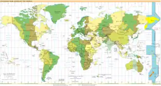 Landen en gebieden met zomertijd zijn, op het noordelijk (*) respectievelijk het zuidelijk (**) halfrond: