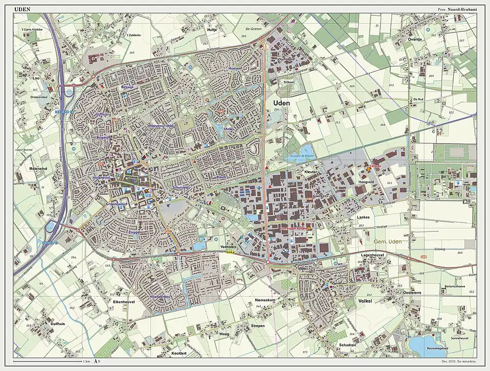 Topografische kaart van Uden, december 2013. Klik op de kaart voor een vergroting.