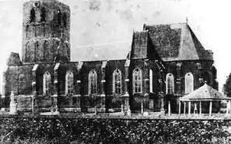Vijf en een halve eeuw later werd medio 1300 de eerste stenen parochiekerk gebouwd, gewijd aan Sint-Petrus Stoel van Antiochië. De oudste klok, gewijd aan O.L. Vrouw dateert van dit jaar; latere klokken zijn van 1443 (St.-Pieter) en 1484 (Jezus Nazarenus).