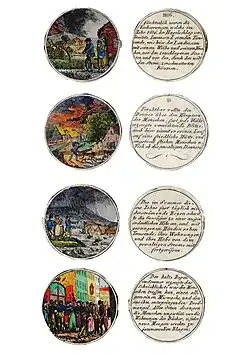 Tinnen medaille die de voedselprijzen van 1816 toont -