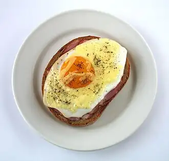 Dit gerecht komt oorspronkelijk uit Duitsland, uit de regio rond Berlijn. Hier werd het Strammer Max genoemd. Bij de Strammer Max wordt het brood in de pan geroosterd en ook de ham gebakken, waarna het ei (of de eieren) over de ham gebakken wordt. In het oorspronkelijke gerecht werd geen kaas gebruikt.