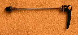 De snelspanner heeft aan de ene zijde een schroefdraad, waarmee een borgstuk aangedraaid kan worden. Aan de andere zijde zit een veersysteem en een hefboompje, waarmee het wiel in het frame wordt geklemd.