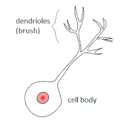 De unipolaire borstelcel heeft één korte dendriet waar de korrelcel er vier of vijf heeft.