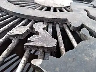 De smeedijzeren grillplaat is gegoten in de vorm van een wereldkaart.