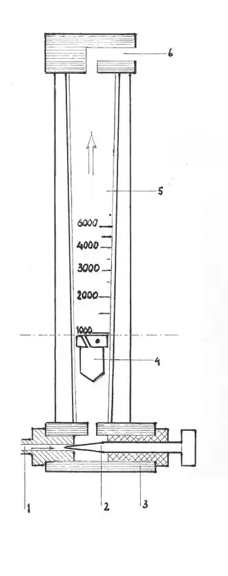 De hoogte waarop de drijver stil blijft staan kan op een schaalverdeling worden afgelezen als het debiet van het medium, meestal uitgedrukt in liters per minuut (L/min).