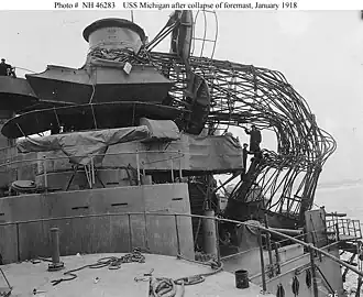 Een vakwerkmast op een oorlogsschip was een constructie van staal met een open roosterstructuur. Dit maakte de mast minder kwetsbaar voor vijandig vuur en ook werd de schok veroorzaakt door het afvuren van de eigen zware wapens verminderd. Dit laatste was van belang omdat gevoelige apparatuur als afstandsmeters boven in de mast stond opgesteld. De masten bleken kwetsbaar tijdens tyfoons en orkanen. De mast van de USS Michigan werd in 1918 tot op het dek omgebogen tijdens zo'n storm. Daarnaast nam het kaliber en schietbereik van de wapens toe waardoor de afstandsmeters ook groter en zwaarder werden. De constructies werden gesloopt en vervangen door meer rigide driepuntsmasten.