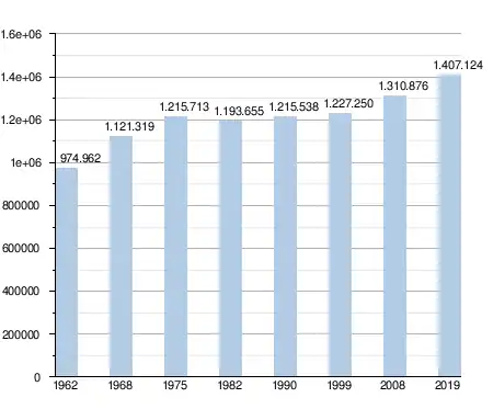 Bron: Recensement Populaire INSEE - 1962 tot 1999 population sans doubles comptes, nadien Population Municipale