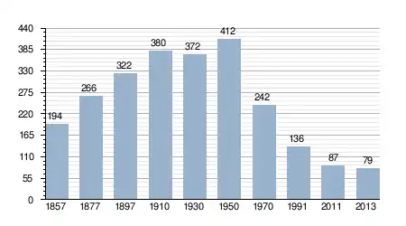 - Bron: INE, 1857-2011: volkstellingen