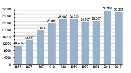 - Bron: INE; 1857-2011: volkstellingen