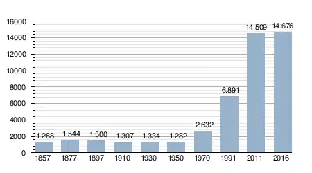 - Bron: INE; 1857-2011: volkstellingen