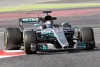 In 2017 maakte Bottas de overstap naar het team van Mercedes om regerend wereldkampioen Nico Rosberg, die was gestopt met de autosport, op te volgen.[4] Tijdens de Grand Prix van Bahrein behaalde hij voor het eerst in zijn Formule 1-carrière de poleposition. Hij wist deze niet te verzilveren, maar in de daaropvolgende race in Rusland won hij zijn eerste Formule 1-race.