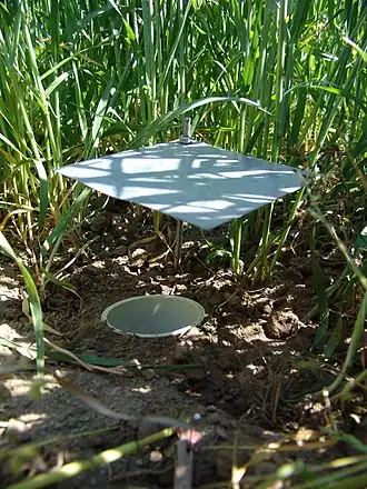 Een kikkerval is een grote versie van een bodemval, die dan vaak uit een ingegraven emmer bestaat.