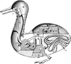 Veel van de dingen die Vaucanson bouwde, dienden louter ter vermaak. Zo bouwde hij in 1738 zijn "flûteur automatique", een levensgrote mechanische pop die fluit kon spelen. Het apparaat had twaalf liedjes op zijn repertoire. Ook vervaardigde hij een tamboerijn spelende machine. Echt beroemd werd Vaucanson met zijn mechanische eend. Deze kon niet alleen ploeteren en zwemmen in het water of met de vleugels slaan, ze kon ook eten. En het wonderbaarlijkste was dat ze het eten ook nog leek te kunnen verteren; via een chemische reactie in kunstmatige darmen. In feite ging het echter om een trucje: de eend bevatte een reservoir met "voorverteerd voedsel" dat dan werd uitgescheiden.