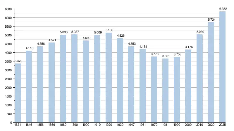 Alle historische gegevens hebben betrekking op de huidige gemeente, inclusief deelgemeenten, zoals ontstaan na de fusie van 1 januari 1977.