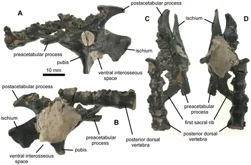 Het holotype NHMUK PV R36621 is gevonden in de Chale Clay Member van de Atherfield Clay Formation van de Lower Greensand Group, een kleilaag, meer bepaald behorend tot de Deshayesites forbesi-zone, Deshayesites fittoni-subzone, die dateert uit het vroege Aptien, ongeveer 124 miljoen jaar oud. Het bestaat uit een linkerbekkenhelft, met daaraan verbonden de voorste drie sacrale wervels en de achterste ruggenwervel, en een rechterzitbeen van een jongvolwassen of volwassen individu. De prepubes ontbreken. Het specimen lag oorspronkelijk nog in verband maar brak in stukken tijdens het bergen.