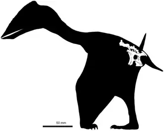 | Silhouet van Vectidraco met in het wit de gevonden resten | |||||||||||||||