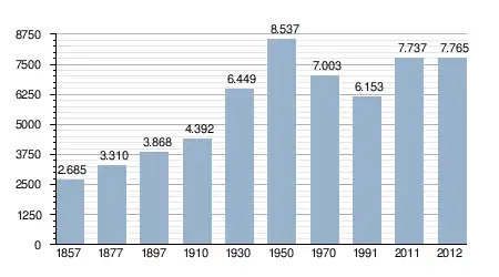 - Bron: INE, 1857-2011: volkstellingen
