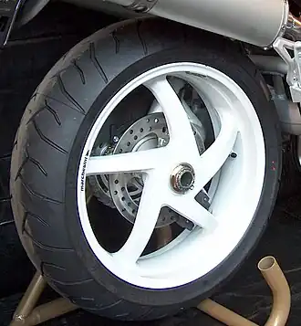 Wielen van motorfietsen leken aanvankelijk sterk op die van fietsen. In de jaren zeventig raakten echter gietwielen in zwang: lichtmetalen wielen die - door het ontbreken van losse spaken - het gebruik van tubeless banden mogelijk maakten, en bovendien niet het gevaar van gebroken spaken kenden. Ze werden aanvankelijk uitsluitend in de wegrace toegepast, hoewel niet alle coureurs er gecharmeerd van waren. Deze wielen waren indertijd ook zwaarder dan spaakwielen en bovendien minder sterk. Toch zijn ze tegenwoordig algemeen in gebruik, met uitzondering van terreinmotoren en motorfietsen die een meer "klassieke" uitstraling hebben (de retro bikes). Om toch tubeless banden te kunnen gebruiken worden soms kruisspaken toegepast, die buiten de band door de velg steken.