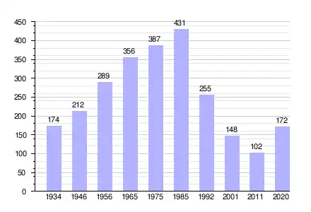 | Bevolkingsontwikkeling tussen 1934 en 2020 |