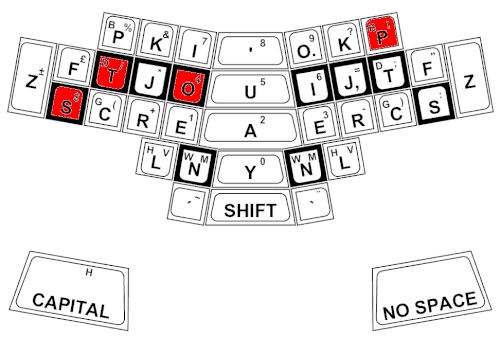 Naast bovenstaande principes waren er nog veel compromissen en veel inspiratie nodig om tot een werkend toetsenbord te komen. Zo zijn er bijvoorbeeld te veel medeklinkers om op beide vleugels te zetten; dat zou het toetsenbord te groot maken. Daarom hebben niet alle medeklinkers een eigen toets, maar is een combinatie van toetsen nodig voor sommige medeklinkers. Zo levert de combinatie P en J een B op (dit geldt voor beide vleugels).