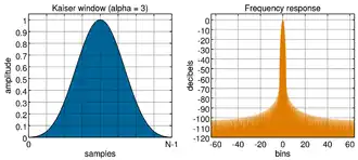 waarbij de nulde orde gemodificeerde Besselfunctie van de eerste soort is, en een parameter die doorgaans 3 wordt gekozen. Merk op dat
