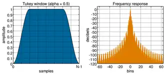 Het Tukey-venster kan worden beschouwd als een cosinusvorm met een breedte die wordt geconvolueerd met een rechthoekig venster met een breedte . Voor a=0 wordt het venster rechthoekig, en voor a=1 een Hanning-venster.
