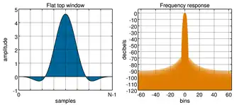 Het flattopvenster is ontworpen om de scallop loss, dus de mogelijke fout bij de amplitudemeting van een sinusvormig signaal, te minimaliseren. Een flattopvenster geeft een quasi-correcte amplitudemeting. Daar tegenover staat een zeer slechte prestatie op het gebied van resolutie, want de hoofdlobe van een flattopvenster is vijf maal zo breed als bij een rechthoekig venster.