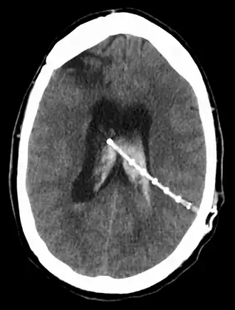 Een ventrikeldrain is een drain of shunt (kunststof afvoerbuisje) in de ventrikels van de hersenen en wordt door een neurochirurg geplaatst in de steriele omgeving van een operatiezaal. De functie van de ventrikeldrain is tweeledig. Enerzijds kan men via deze drain de druk van het hersenvocht meten. Anderzijds kan men, indien nodig, bij overdruk ventrikelvocht draineren (afvoeren) in een recipiënt (zakje, bakje, holte) om zo de hersenen meer ruimte te geven en de druk van het hersenvocht op de hersenen te verminderen. De tip van de ventrikeldrain bevindt zich in de ventrikels, in het midden van de hersenen. Normale menselijke hersenen bevatten vier ventrikels, meestal bevindt een ventrikeldrain zich in de derde en grootste ventrikel.