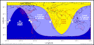 Op het kaartje is aangegeven waar op aarde de Venusovergang waar te nemen was. Overigens moet men bij het waarnemen van de zon altijd een donker hulpmiddel zoals een eclipsbril gebruiken. Een zonnebril is onvoldoende.
