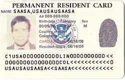 De verblijfsvergunning in de Verenigde Staten heet officieel Permanent Resident Card, maar wordt doorgaans Green Card ("groene kaart") genoemd.