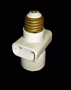 Verdeelfittingen, in de hieronder genoemde link naar Algemeen Dagblad aftaklamphouder genoemd, zijn evenals de vroegere driewegstekkers in Nederland sinds mei 1966 niet meer toegestaan.[2] Een verdeelfitting wordt in een lamphouder gedraaid en kan twee stekkers en een lamp opnemen. Een extra bezwaar hiervan is dat het snoer van een aangesloten apparaat langs de hete lamp ligt. Verdeelfittingen waren populair in de tijd dat huizen te weinig stopcontacten hadden, doordat bij de elektrische aanleg niet werd verwacht dat elektriciteit nodig was voor een ander doel dan verlichting. Op terrassen met lichtsnoeren werden ze ook wel gebruikt om elektrische apparaten aan te sluiten op deze lichtsnoeren. Hiervoor werd dan een verdeelfitting gedraaid in één van de houders van het lichtsnoer nadat het lampje eruit was gedraaid, waarop dan het apparaat, bijvoorbeeld een frituurpan of een radio kon worden aangesloten, zodat de apparaten dan gebruik konden maken van de stroom van dit snoer. Onderin kon dan het betreffende lampje ingedraaid worden voor de verlichting.