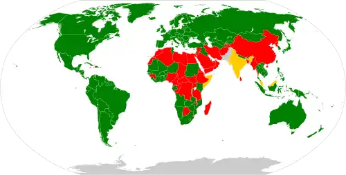 Volgens een rapport van Equality Now (link naar Wikipedia in het Engels) uit 2017 waren er van de 82 bestudeerde jurisdicties nog 10 landen waarin verkrachting binnen het huwelijk legaal was: Ghana, India, Indonesië (mogelijk gedekt door een wet tegen huiselijk geweld uit 2004, maar niet opgenomen in het strafwetboek), Jordanië (alleen anale en orale verkrachting van een echtgenote is verboden), Lesotho, Nigeria, Oman, Singapore, Sri Lanka en Tanzania. Het rapport voegde eraan toe dat de wet van Thailand de daad ongestraft kan laten of verminderd straffen, vooral als de relatie wordt voortgezet.[6]