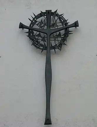 De kleurrijke ramen werden in 1962 door de Duitse kunstenaar Harry MacLean gemaakt en tonen de Boom des levens, de uitstortende Genade, het doopwater van de Jordaan, het Hemels Jeruzalem en de vuurkolom van de uittocht uit Egypte. Het tabernakel, de doopschaal, het bronzen kruis aan de buitenmuur en het bronzen portaal stammen eveneens van MacLean. Het portaal stelt de uitzending van de discipelen volgens Johannes 20:20-22 voor; het kruis moet met de omhoog gebogen zijarmen en de doornenkroon als stralenkrans er aan herinneren dat de kruisiging en de opstanding in het geloof onlosmakelijk met elkaar verbonden zijn.