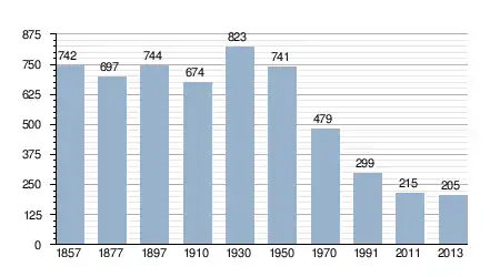 - Bron: INE, 1857-2011: volkstellingen