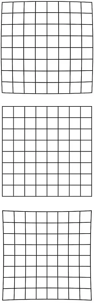 Van een lenzenstelsel wordt verwacht dat het de driedimensionale ruimte op een tweedimensionaal plat vlak afbeeldt met inachtneming van lijnperspectief (ook centraal perspectief geheten). Wanneer een voorwerp met rechte lijnen door een lenzenstelsel wordt afgebeeld blijkt er echter meestal sprake van kleine afwijkingen van dit perspectief. Het heet tonvormige vertekening wanneer de zijden van een zuivere rechthoek in de afbeelding naar buiten welven (bol staan), en het wordt kussenvormige vertekening genoemd wanneer de zijden naar binnen krommen (hol staan). De afbeelding toont een vierkant met 5% tonvormige vertekening, een perfect vierkant raster en een vierkant met 5% kussenvormige vertekening.