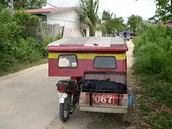 Een andere vorm van openbaar vervoer is de Filipijnse tricycle. Dit is een veelvoorkomend vervoermiddel dat ideaal is voor kortere routes en op kleinere wegen waar bussen en jeepneys niet rijden. Een Filipijnse tricycle is een motorfiets met zijspan en een overkapping. Met een tricycle kunnen na wat passen en meten tot 5 personen vervoerd worden.