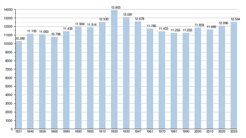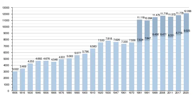 Alle historische gegevens hebben betrekking op de huidige gemeente, inclusief deelgemeenten, zoals ontstaan na de fusie van 1 januari 1977.