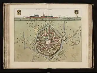| Grote markt met het Landshuis, belfort en Sint-Walburgakerk | |||