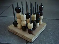 Onder de naam Vier op 'n rij: de uitdaging is een 3D-variant van het spel verschenen. Het verticale bord is vervangen door een horizontale plaat die is onderverdeeld in 16 vakken. Het midden van elk vak bevat een spindel, waaraan maximaal vier schijven kunnen worden geschoven. De schijven, met een opening in het midden, kunnen om de spindel worden geschoven. De spelregels zijn gelijk aan het originele spel maar nu kunnen rijen niet meer alleen in de hoogte en breedte gevormd worden, maar ook in de lengte.