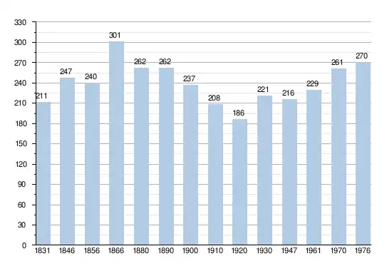 - Bronnen:NIS, Opm:1831 tot en met 1970=volkstellingen, 1976= inwoneraantal op 31 december