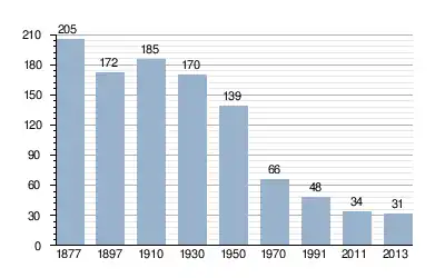 - Bron: INE, 1877-2011: volkstellingen