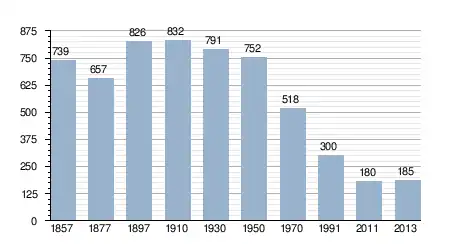 - Bron: INE, 1857-2011: volkstellingen