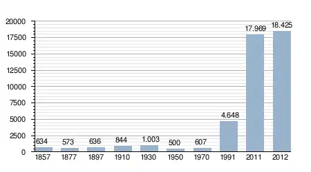 - Bron: INE; 1857-2011: volkstellingen