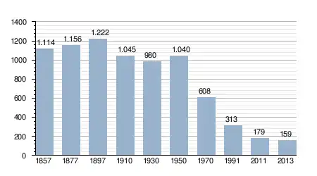 - Bron: INE, 1857-2011: volkstellingen