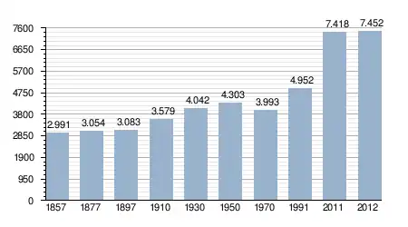 - Bron: INE, 1857-2011: volkstellingen