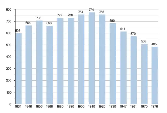 - Bronnen:NIS, Opm:1831 tot en met 1970=volkstellingen, 1976= inwoneraantal op 31 december