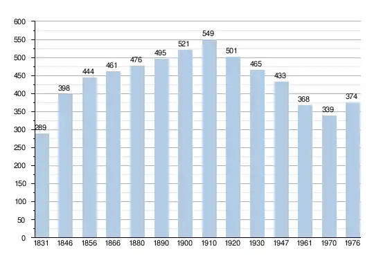 - Bronnen:NIS, Opm:1831 tot en met 1970=volkstellingen, 1976= inwoneraantal op 31 december