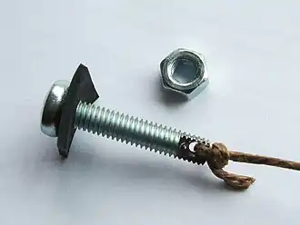 Aan een touwtje knoopt men een spijker of iets anders dat zwaar genoeg is om het touwtje onder water min of meer strak te trekken. Het touwtje moet voldoende lengte hebben om vanaf de lekke nagel ruim boven water te komen, zodat je er weer bij kan. De lekke klinknagel wordt van binnenuit het schip uitgeboord. Er ontstaat een fontein, maar die blijft beperkt bij snel werken. Door het gat wordt de spijker naar buiten gestoken en met een haakstok of door een lijn onder het schip door te trekken opgevist. Vandaar de naam. Op de bout wordt nu een leertje (of tegenwoordig eerder een rubber ring) gestoken en het touwtje wordt daarna door het gaatje van de bout geknoopt. Vervolgens wordt het touwje binnenuit aangetrokken en de steel van de bout voorzichtig in het gat van de klinknagel naar binnen getrokken. Daarna wordt er een moer op gedraaid en aangehaald. Om het meedraaien van de bout te voorkomen kan met een verstelbare sleutel of een tang het platgevijlde stripje vastgehouden worden.